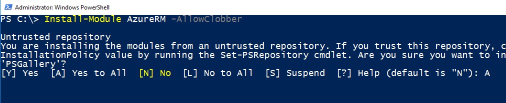 Se debe a que no tenemos instalada la última versión de AzureRM. Es posible que tengamos instalada la última versión del módulo Az, pero para Azure File Sync se requiere el módulo AzureRM. Podemos solucionarlo con: