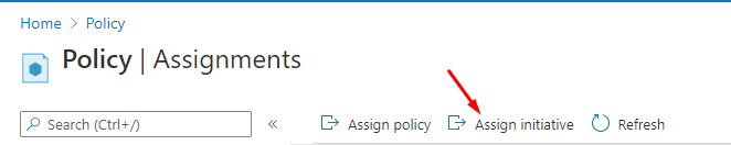 Para ello, dentro del servicio de políticas vamos a buscar y asignar la iniciativa. Pulsamos en «Assign initiative«.