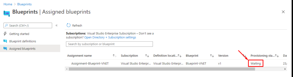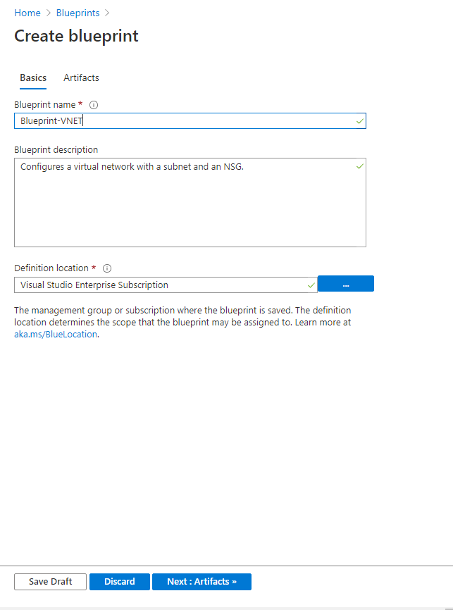 Ya tenemos nuestro Blueprint creado. Pulsaremos ahora en «Definitions» en el menú (blade) de la izquierda.